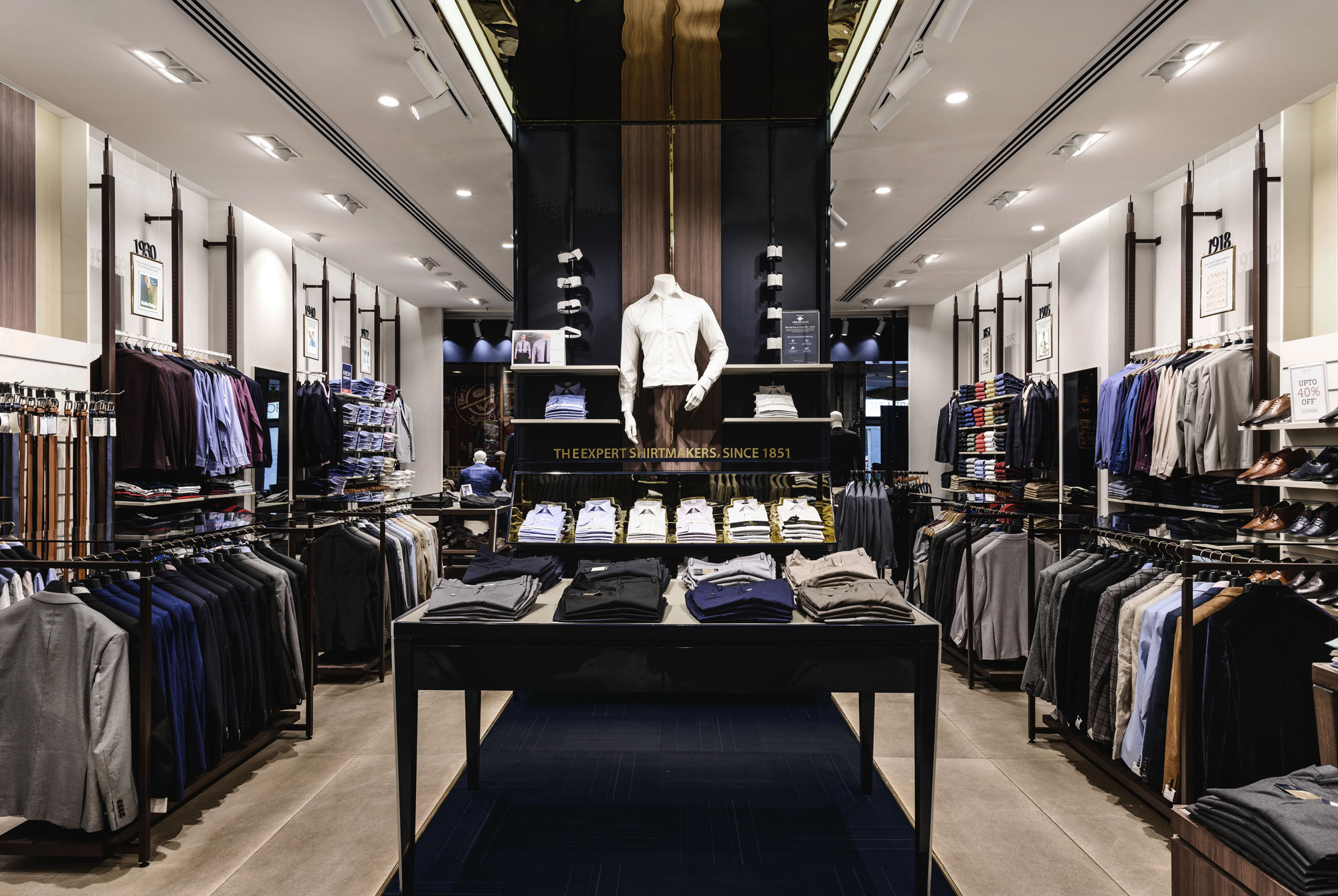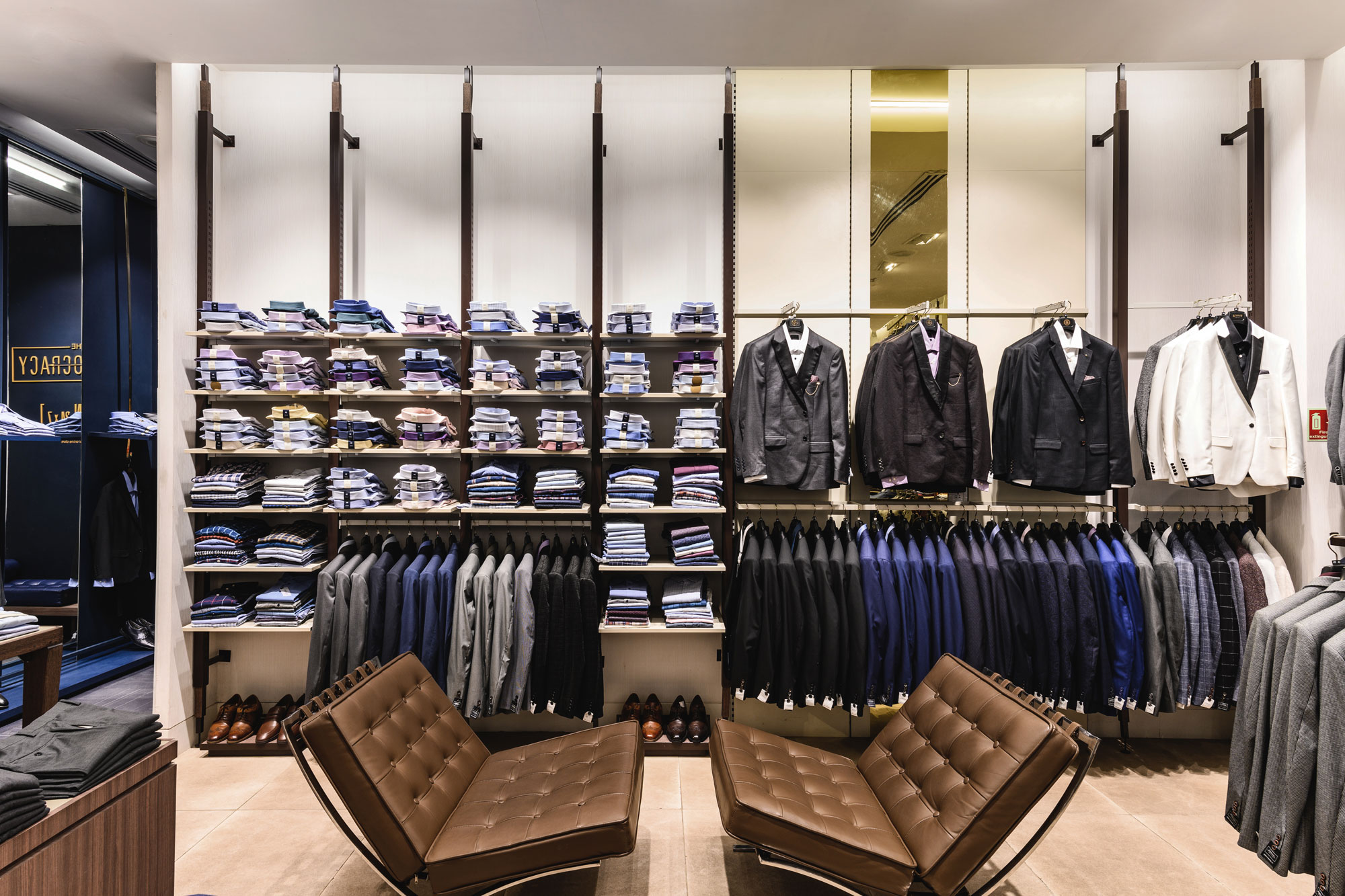 The store is laid out in clear zones. We have consciously integrated strong styling suggestions throughout. We have also created the fitting rooms in monotone whilst the walls and floor are rendered in the brand colour to aid the customer focus. Importantly, the experience is not just focused on the consumer, because men usually don’t shop alone. We have, therefore, created comfortable seating near the fitting rooms and provided laptops for the partners of the shoppers to browse for styles and looks.