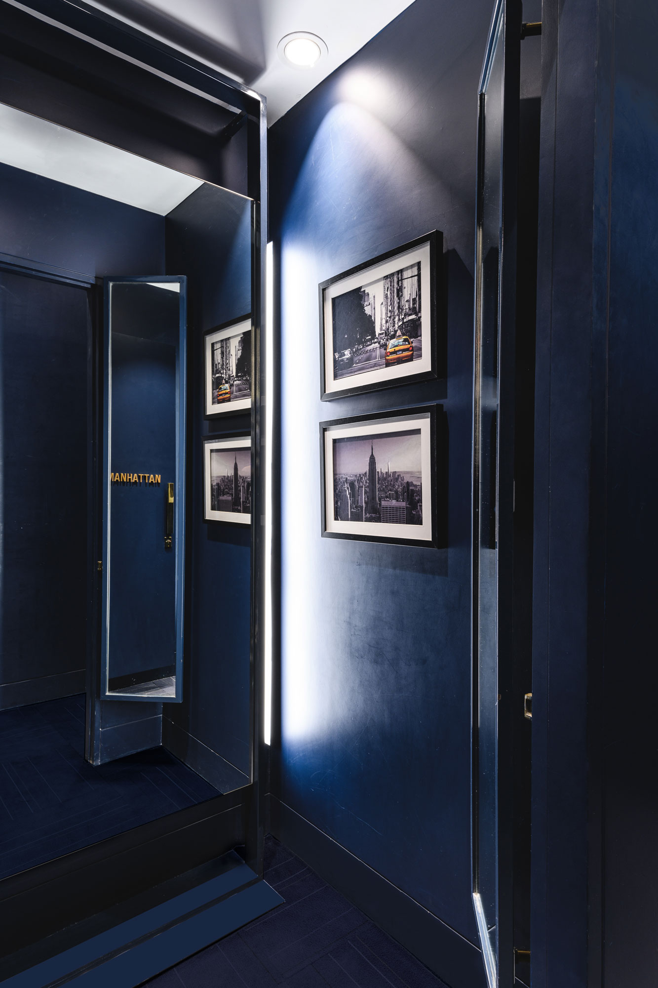 The store façade takes its architectural inspiration from New York. This continues into the store with the wall fixture design – from floor to ceiling, accentuating verticality and made from wood and brass.