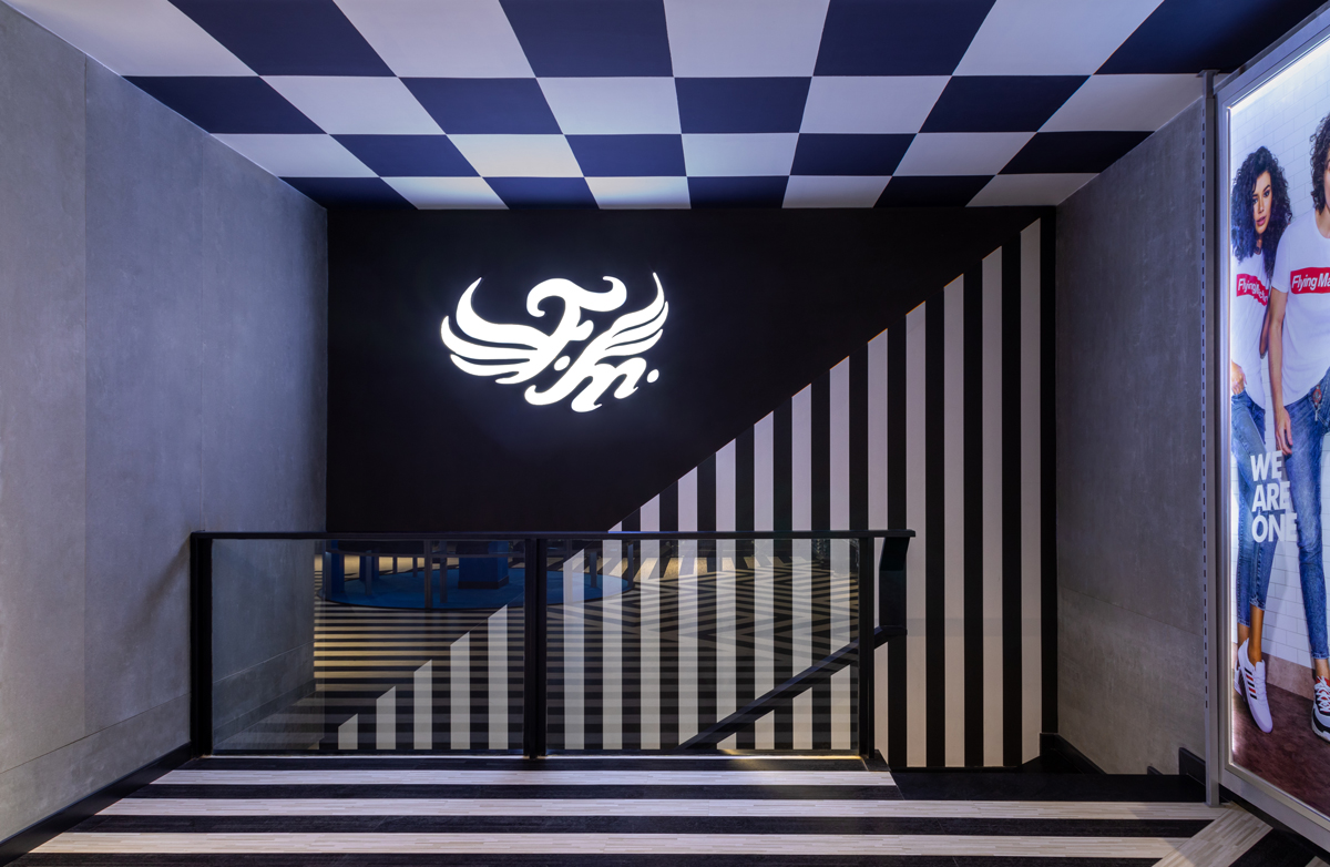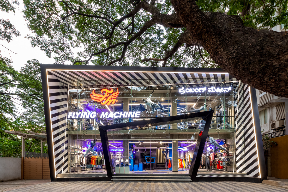Designing the 3000 sqft flagship store for Flying Machine started from the brand’s edgy identity. The prime street facing store location, meant the design had to have high visual appeal.