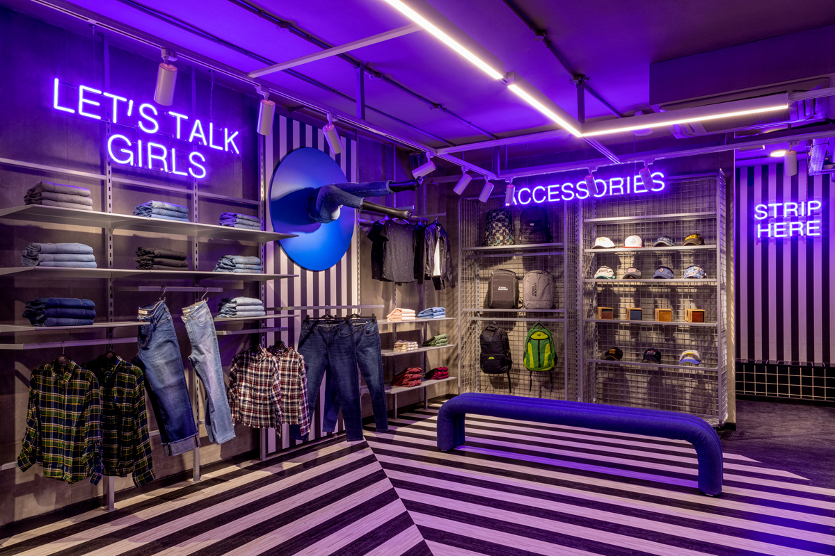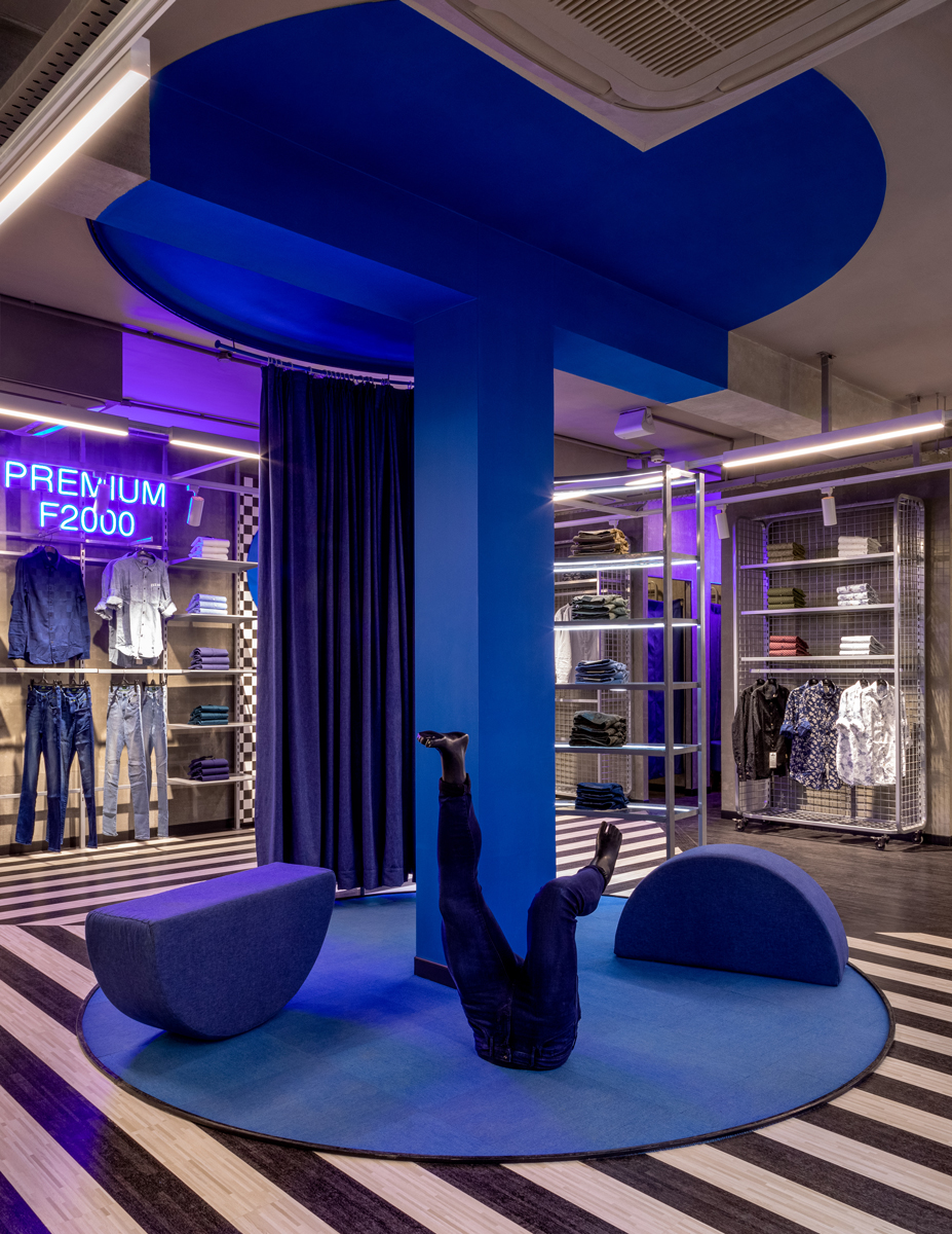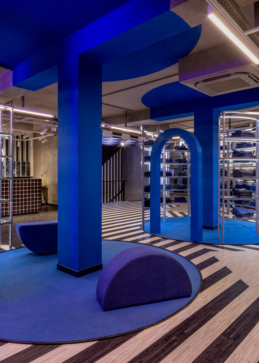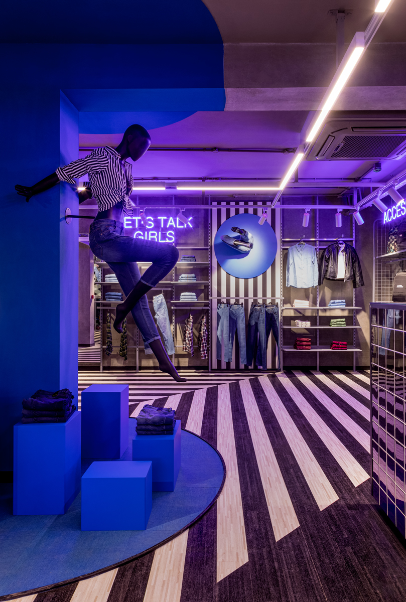 The aim for Restore, was to create a cool space, that is audacious and youthful. At the same time, showcase a celebration of denim as the core agenda of the store design.