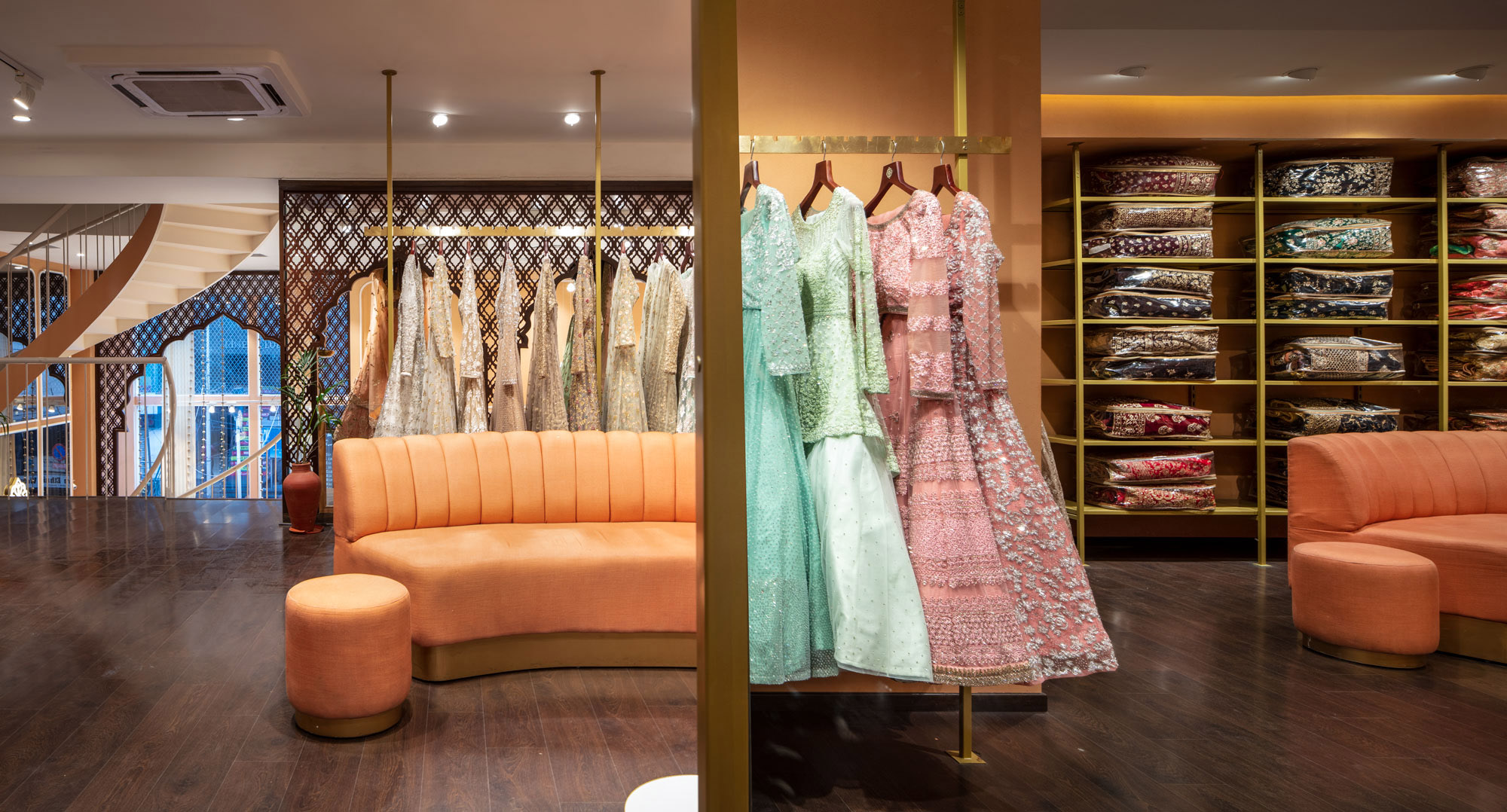 The store has been designed with the thoughtfulness and love that goes into the making of a lehnga. We found our architectural inspiration for the store in the traditional havelis of India.