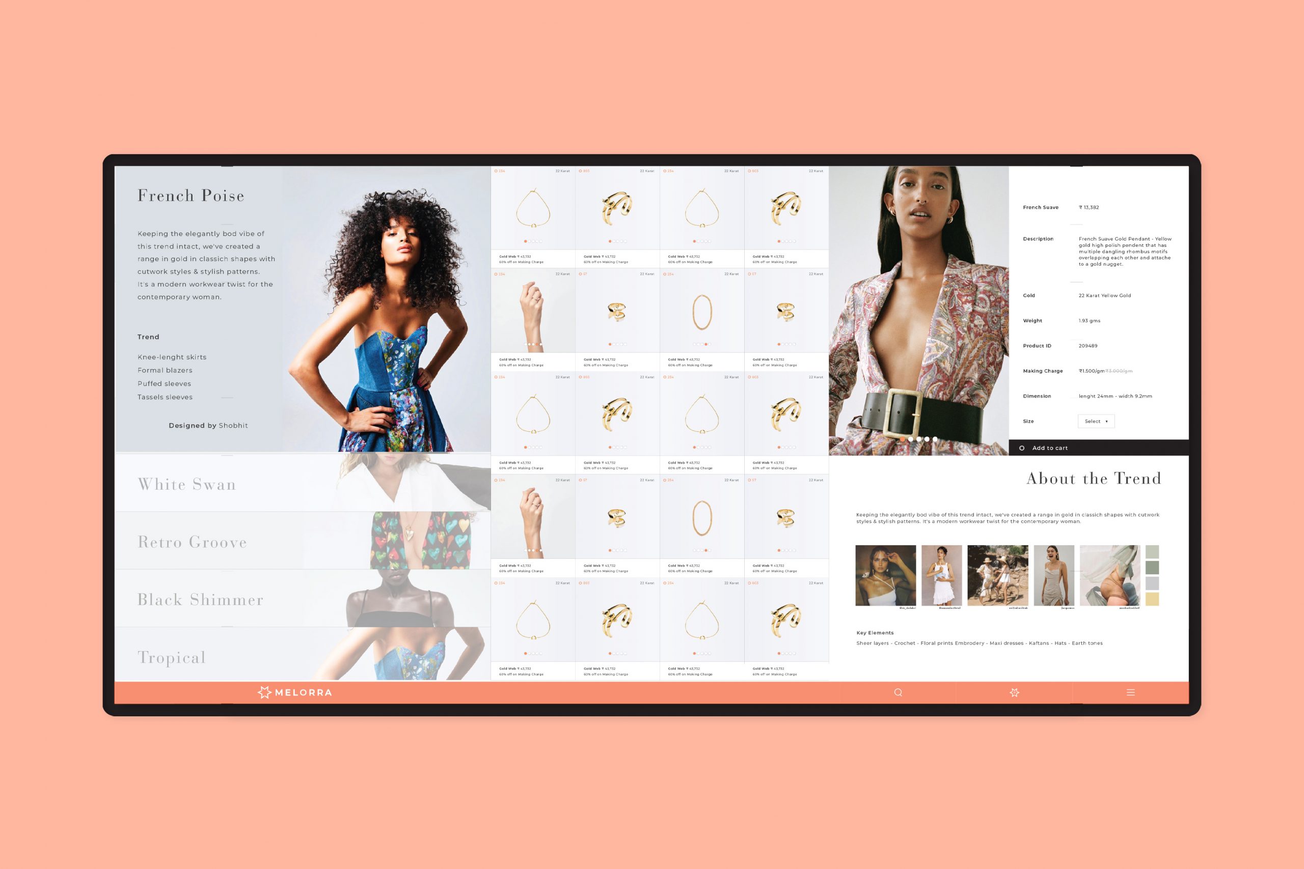 Melorra is a fashion-forward online jewellery brand which provides lightweight real gold and diamond jewellery created for the contemporary wardrobe of the modern woman. Restore was asked to bring about a cohesion between the online stores and the offline retail space – for this digitally native brand – at a brand level.
