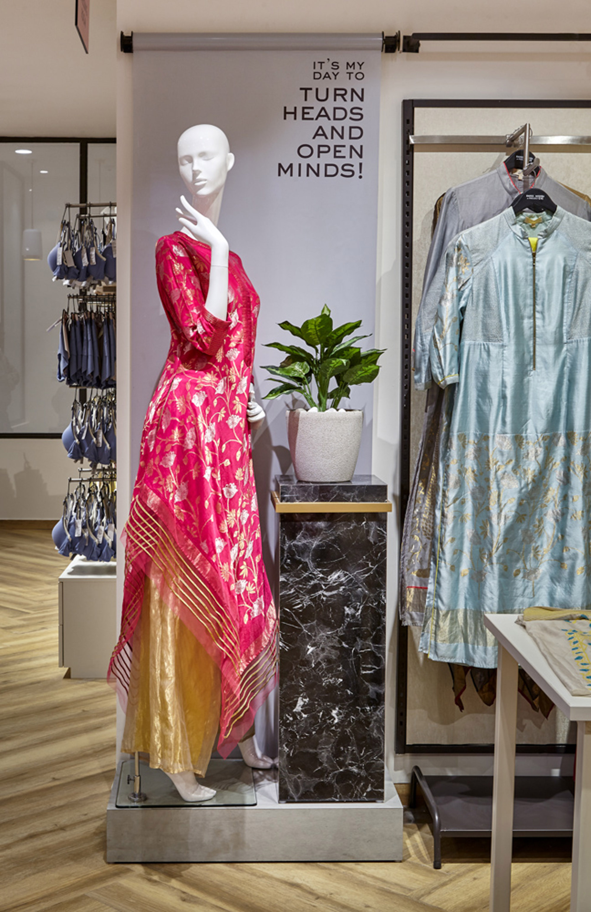 We created an array of bespoke design elements to engage and interact with the shoppers. Starting from a personalised shopper journey to innovative and luxurious dressing rooms. Project Eve also houses a café and salon, offering shoppers islands of rest and rejuvenation. Thoughtfully designed dressing rooms offer personalised services of a stylist to create that bespoke look. It is retail therapy in the truest sense of the term.