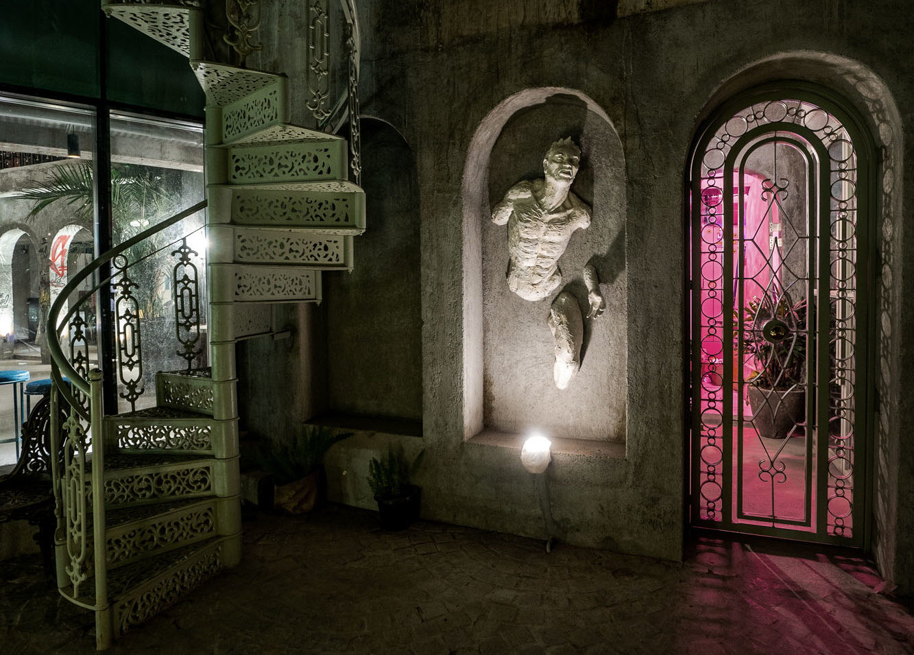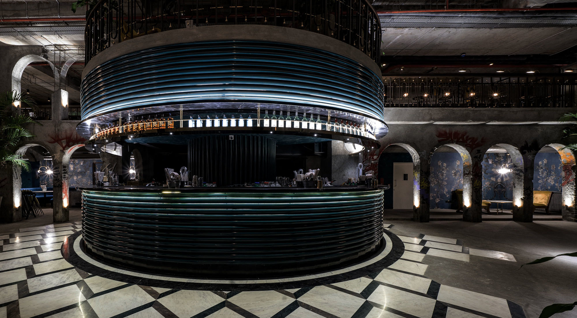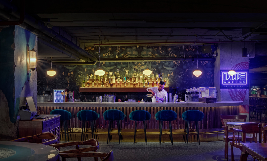 An empty shell of a partly constructed space on the top floor of a commercial property was transformed to look like an abandoned penthouse. A unqique penthouse that has now been vandalised. This design tact, fits perfectly with Social’s philosophy of recycle and upcycle. Sarjapur Social also draws its inspiration from the Playboy penthouse created by Hugh Hefner.