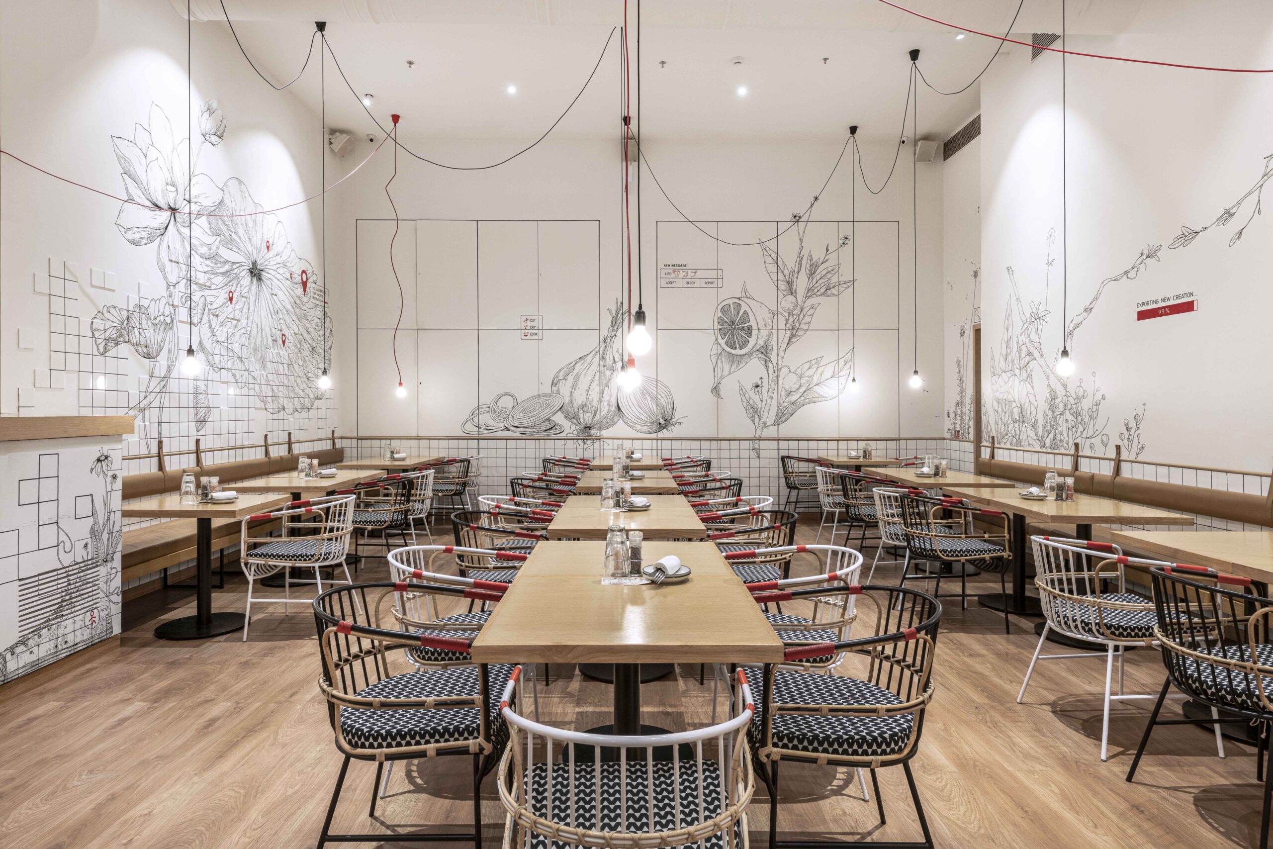 Big things come in small packages – that was the principle behind the impact Restore tried to create for this specific site due to its narrow nature. Inviting and cosy had to open up to an expansive dining hall in the end, including the incorporation of the ‘goodness to go’ section and the signature SHD 2.0 bar – visible from the get go.