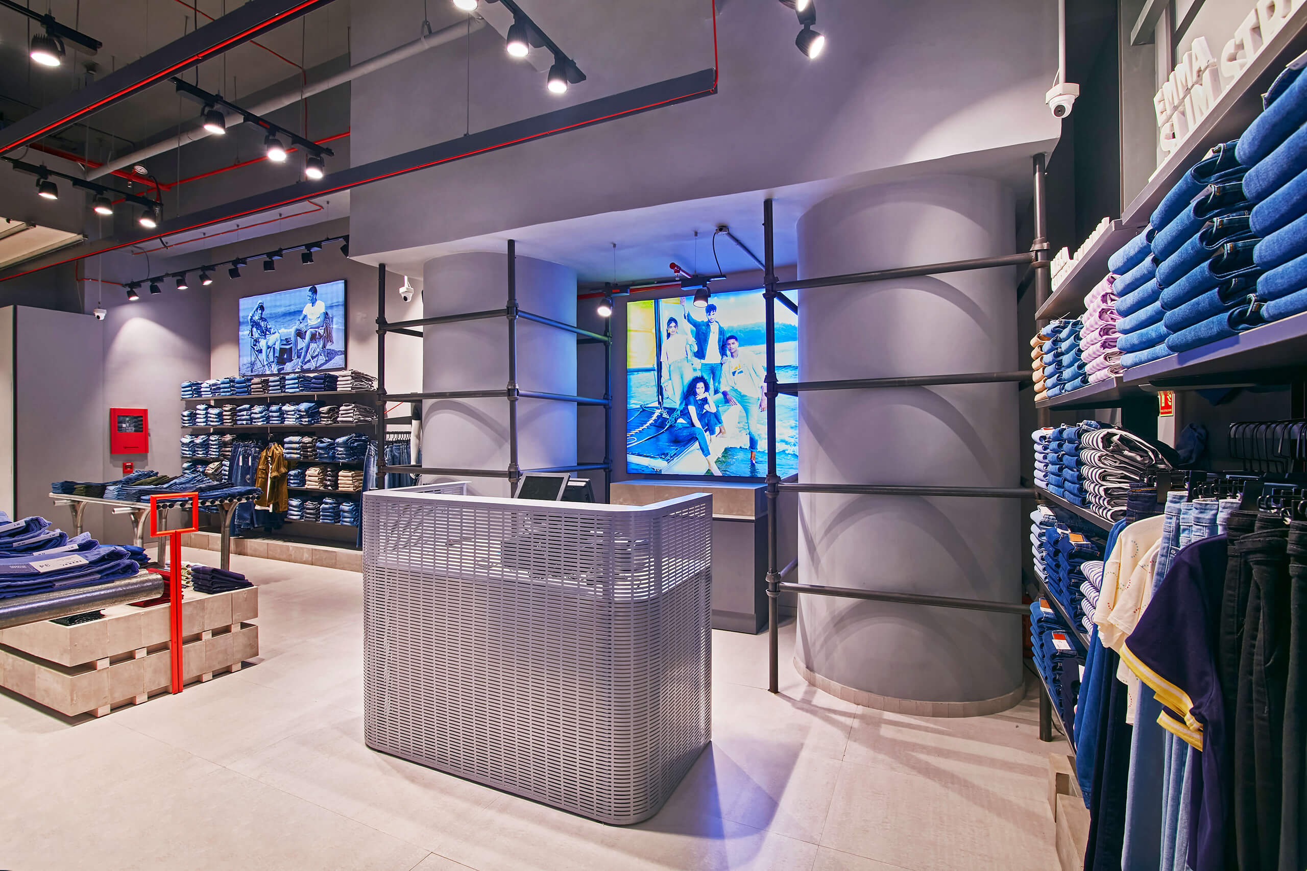 The primary objective in designing this store was to create a space that not only stands out in the retail landscape but also resonates deeply with the brand’s signature denims and the act of “constructing” denim wear. The aim was to craft an environment that is not just a place for transactions but an immersive experience that embodies the brand’s ethos and engages customers in a unique way.