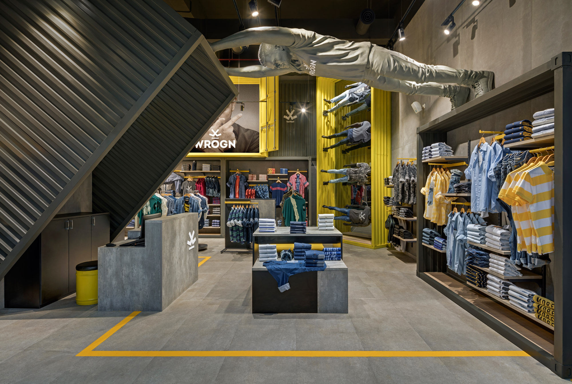 We treated boxy shipping containers as a visual metaphor for a brand that breaks out of the box. We splashed them in yellow. Bright, bold and breaking free of all clutches. We have a larger than life Virat throwing himself across the store ceiling. To ‘catch’ a falling container. Even our mannequins aren’t the dainty sort. We got them flinging themselves across a container on its side. All of this magic was created with two materials, two colours and one great brand partner, Virat Kohli. The best way to get to get something right is to do it the Wrogn way!